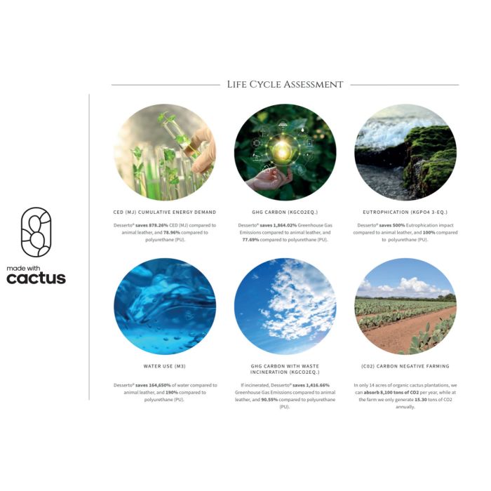 - Constructed from sustainable cactus leather from Mexico